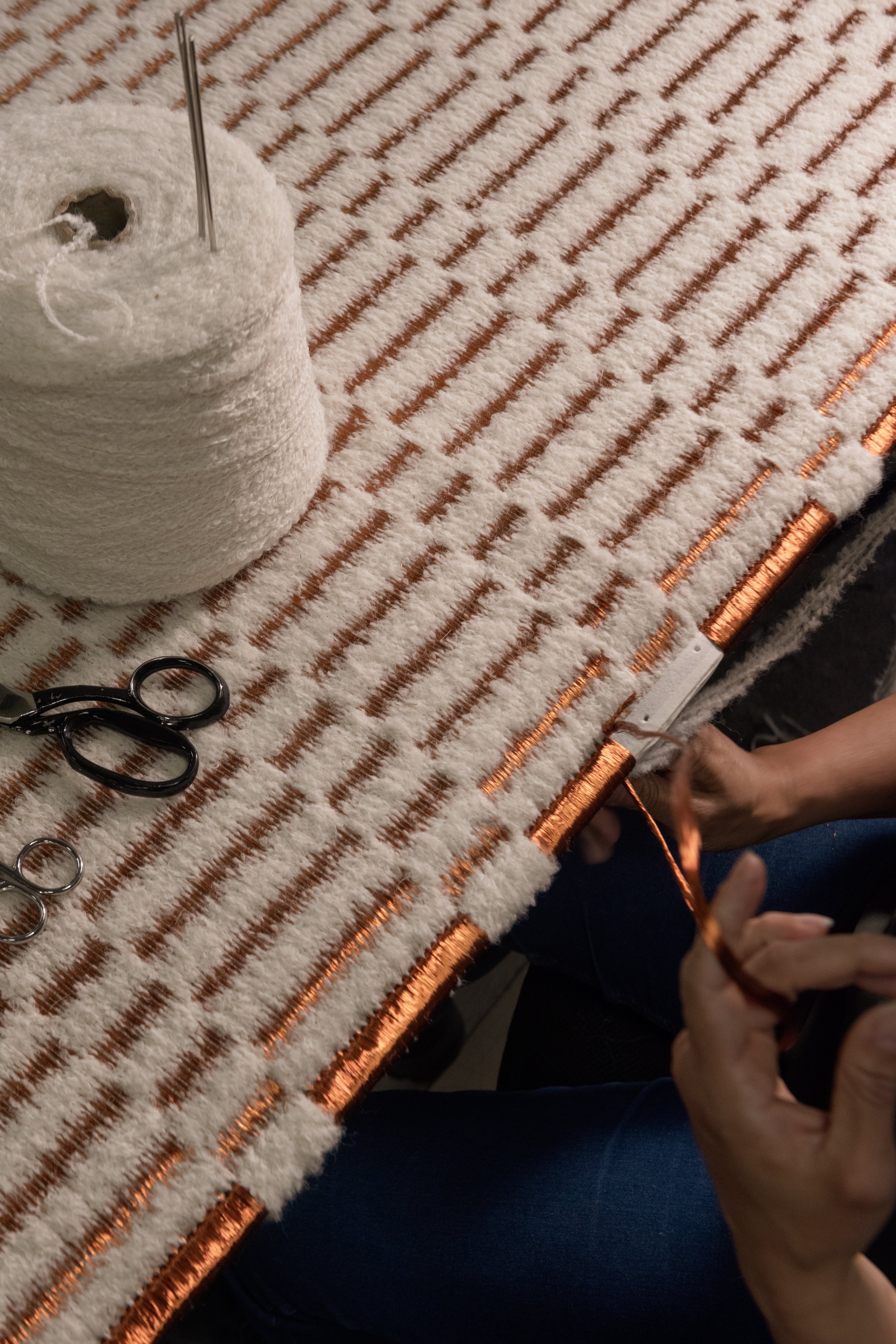Master weavers, whose expertise is the result of generations of practice, patience and consistency, carefully hand-weave our rugs. Once finished, the rug is taken to the backing process, where we manually add an anti-slip backing to ensure resistance, durability and quality.