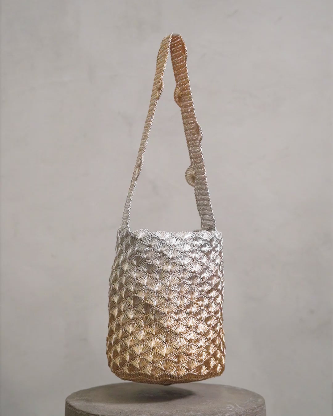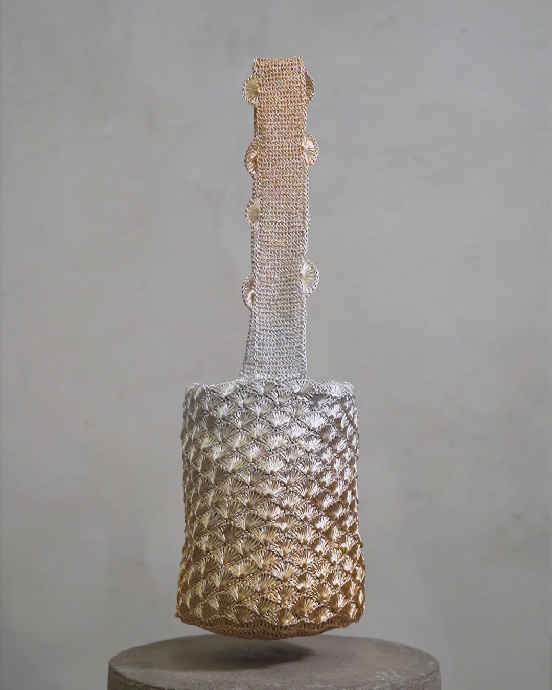 The Kaia collection is an ode to transformation, where light and color merge in a dance of renewal. Defined by its chromatic gradients in gold, silver, copper, and rose gold, this collection reimagines VERDI’s signature silhouettes through an evolving interplay of tones and textures. Handwoven over 15 days by master Colombian artisans at The VERDI Atelier in Bogotá, each piece captures the poetry of change, bringing tradition into a new era. The Kaia Mochila and Clutch embody the essence of reinvention, where craftsmanship and artistic vision converge.