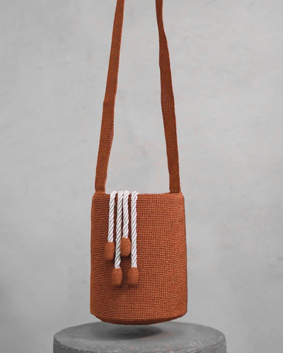 Handwoven mochila in a nido weave that reinterprets the traditional Colombian bag into a modern timeless accessory. This mochila is crafted in copper threads with a beige linen lining, a pouch and two interior pockets.