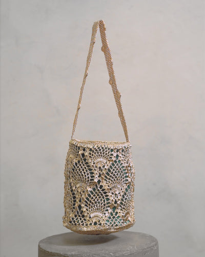 Vibrant and intricate, the Pineapple weave draws inspiration from the layered textures of Latin America’s fauna and flora, celebrating the richness of Colombian craftsmanship. Handwoven over 15 days by master artisans at The VERDI Atelier in Bogotá, each mochila intertwines copper and silver-plated metal threads into a richly textured, tactile surface. With its velvet-lined interior adding contrast and depth, the Pineapple Mochila transforms an ancestral technique into a contemporary statement of artistry, where structure and fluidity coexist in perfect harmony.