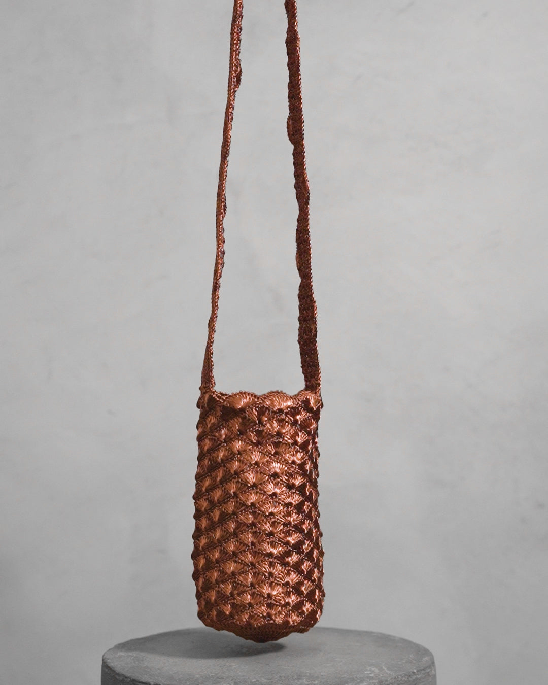 Inspired by the organic patterns of nature, the Seashell weave captures the rhythm of movement and continuity, where each thread flows seamlessly into the next. Handwoven over 15 days by master Colombian artisans at The VERDI Atelier in Bogotá, this collection showcases the delicate interplay of fine copper and silver-plated metal threads, resulting in a luminous, sculptural texture. With its structured elegance and timeless design, the Seashell Mochila and Clutch are woven to endure, carrying the essence of tradition through every delicate knot—a tribute to Colombia’s weaving heritage, reimagined for the present.