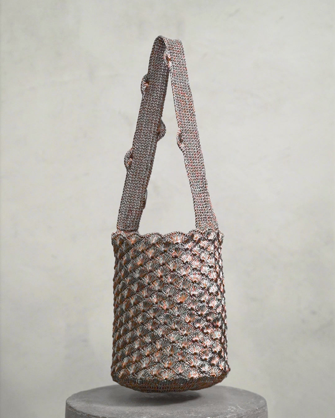 Inspired by the organic patterns of nature, the Seashell weave captures the rhythm of movement and continuity, where each thread flows seamlessly into the next. Handwoven over 15 days by master Colombian artisans at The VERDI Atelier in Bogotá, this collection showcases the delicate interplay of fine copper and silver-plated metal threads, resulting in a luminous, sculptural texture. With its structured elegance and timeless design, the Seashell Mochila and Clutch are woven to endure, carrying the essence of tradition through every delicate knot—a tribute to Colombia’s weaving heritage, reimagined for the present.